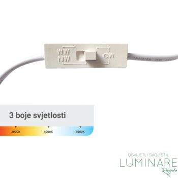 Jedna od glavnih prednosti ovog LED panela je CCT prekidač, koji omogućuje promjenu boje svjetla između toplo bijele (3000K), neutralno bijele (4000K) i hladno bijele (6500K) pomoću integriranog prekidača. Ova funkcija je posebno korisna ako niste sigurni koja temperatura svjetla najbolje odgovara vašem prostoru – s ovim panelom ne morate birati unaprijed, već prilagođavate ambijent prema potrebi.