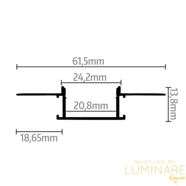 ALU. PROFIL ZA LED TRAKU UGRADBENI 2m 24.2×13.8mm