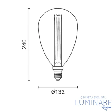 Dimenzije Ø132 mm promjer i 240 mm visina čine ovu žarulju izduženim i vizualno dominantnim elementom. Amber staklo dodatno naglašava toplinu svjetla, dok vidljivi LED filament imitira klasičnu žarnu nit, ali uz znatno manju potrošnju energije i dulji vijek trajanja.