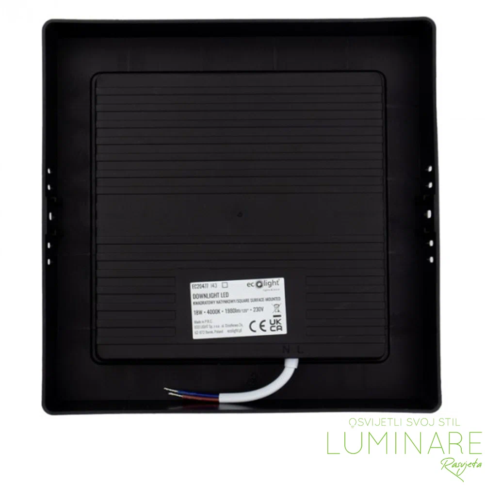 Ovaj nadgradni kvadratni LED panel snage 18W u mat crnoj boji idealan je za prostore koji zahtijevaju jače i ravnomjerno osvjetljenje, a pritom ne nude mogućnost ugradnje rasvjete u strop. Sa svjetlosnim tokom od 1980 lumena, ovaj panel pruža obilje neutralne bijele svjetlosti (4000K), savršene za svakodnevne aktivnosti u domu ili poslovnom prostoru. Njegov elegantan dizajn i jednostavna nadgradna montaža čine ga praktičnim i vizualno atraktivnim rješenjem.