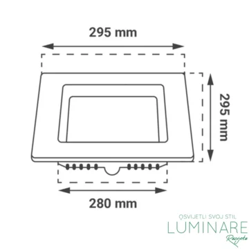 Dimenzija 295×295 mm, izrađen od visokokvalitetnih materijala, ovaj LED panel osigurava dug vijek trajanja i visoku energetsku učinkovitost. Blago uvučen difuzor doprinosi elegantnom izgledu rasvjete i omogućuje ravnomjernu distribuciju svjetla, što ga čini ugodnim za oči i idealnim za dugotrajnu upotrebu.