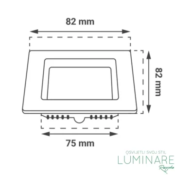 Dimenzija 82×82 mm, izrađen od visokokvalitetnih materijala, ovaj LED panel osigurava dug vijek trajanja i visoku energetsku učinkovitost. Blago uvučen difuzor doprinosi elegantnom izgledu rasvjete i omogućuje ravnomjernu distribuciju svjetla, što ga čini ugodnim za oči i idealnim za dugotrajnu upotrebu.