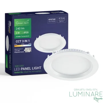 LED PANEL 3W OKRUGLI UGRADBENI BIJELE BOJE – prilagodljivo osvjetljenje uz CCT prekidač. CX-R01-3-3CCT