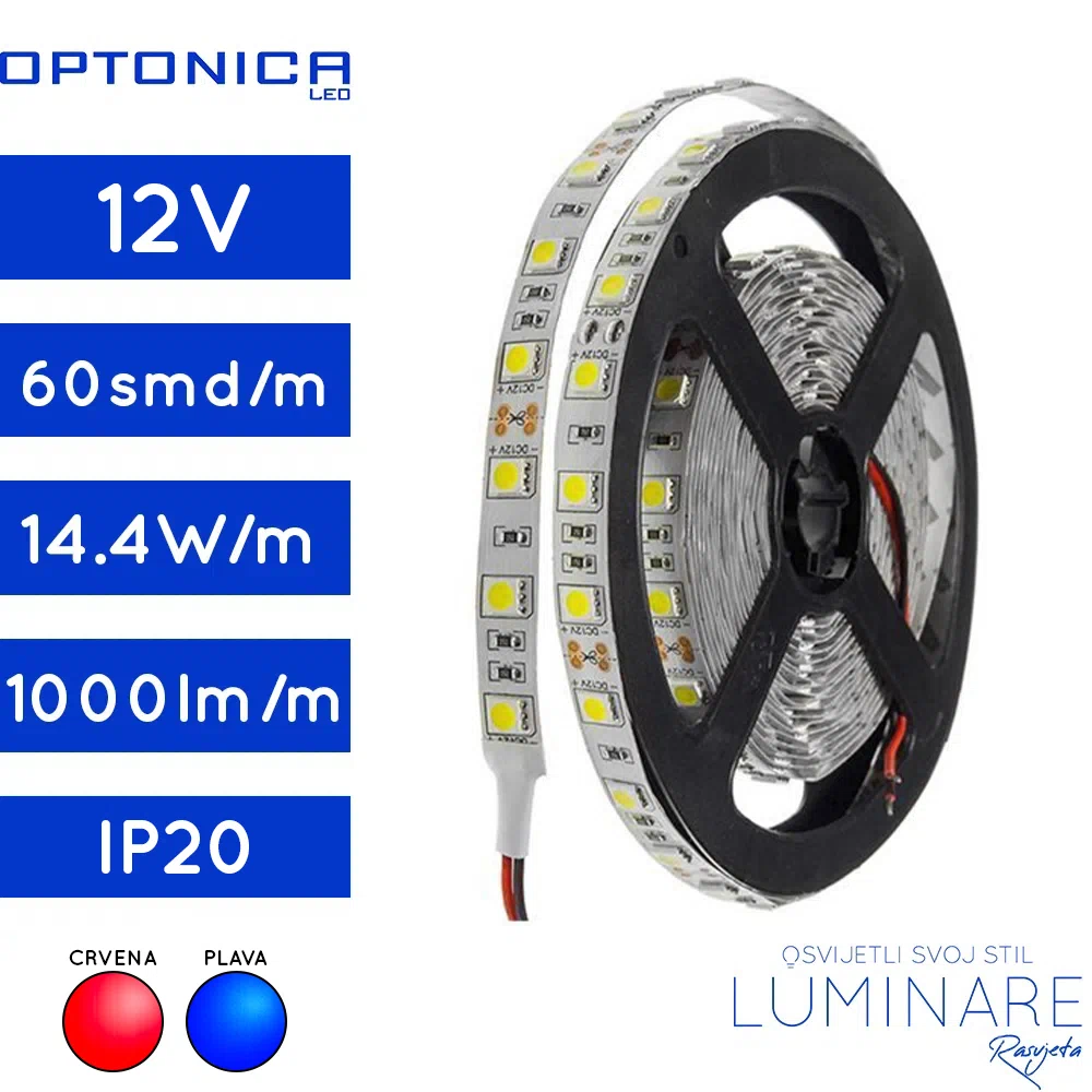 LED TRAKA 5050 12V 14.4W/m 1000lm/m 60LED/m IP20 – 5 metara CRVENA / PLAVA – 4823 / 4825