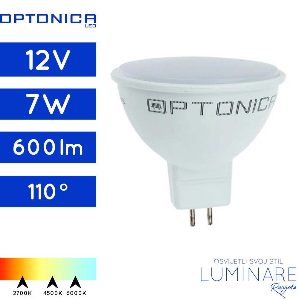 MR16 LED žarulja snage 7W predstavlja snažno i pouzdano rješenje za učinkovitu rasvjetu u stambenim i poslovnim prostorima. Zahvaljujući napajanju od 12V, kompatibilna je s većinom standardnih MR16 rasvjetnih sustava, reflektora i postojećih transformatora, što omogućuje jednostavnu i brzu zamjenu klasičnih halogenih MR16 žarulja.