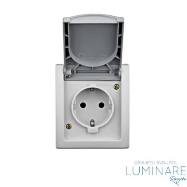 Utičnica sa poklopcem u sivoj boji je praktično rješenje za spajanje električnih uređaja na otvorenom prostoru.