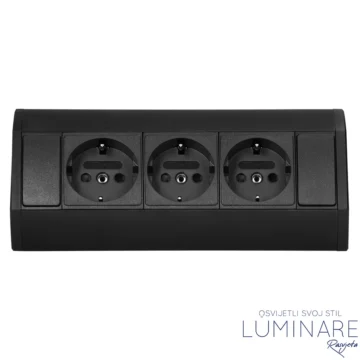 Nadgradna utičnica za namještaj 3x Schuko, s kabelom – CRNA Orno OR-GM-9001(GS)/B