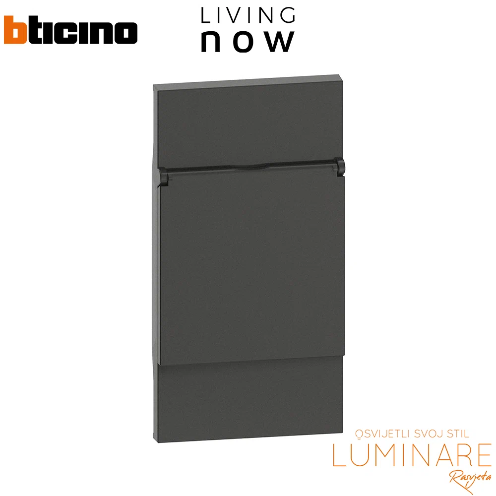 Bticino Living Now 2M pokrov s poklopcem za šuko utičnicu u crnoj boji – Diskretan izgled i dodatna zaštita (KG04P)