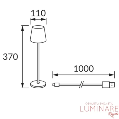 Visina led svjetiljke je podesiva i može se prilagoditi vašim potrebama zahvaljujući dva montažna stupa koji se mogu spojiti kako bi se postigla ukupna visina od 370 mm. Širina je 110 mm, što je čini kompaktno dizajniranom, ali dovoljno velikom da pruži adekvatno osvjetljenje.