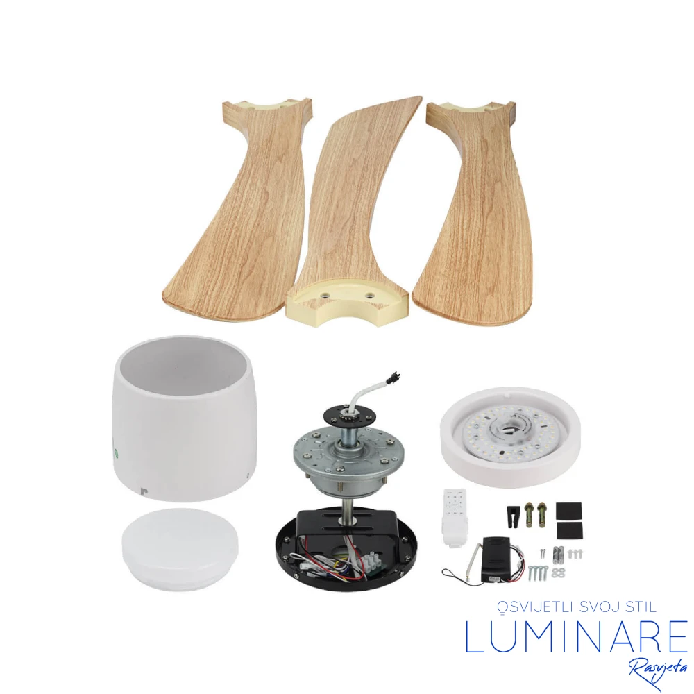 Optonica bijeli/drvo stropni ventilator sa LED svjetiljkom – 19111