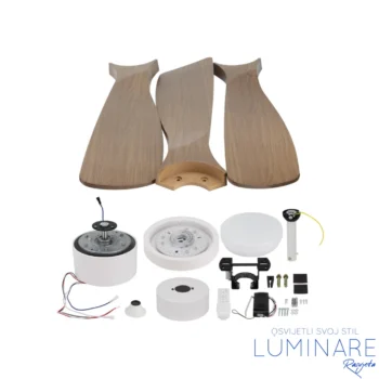 Dizajn ventilatora u kombinaciji bijelog tijela i tamnog hrasta daje elegantan i prirodan izgled koji se lako uklapa u moderne i klasične interijere. Zahvaljujući promjeru ventilatora od približno 1067 mm, ovaj model može učinkovito ventilirati prostorije srednje veličine.