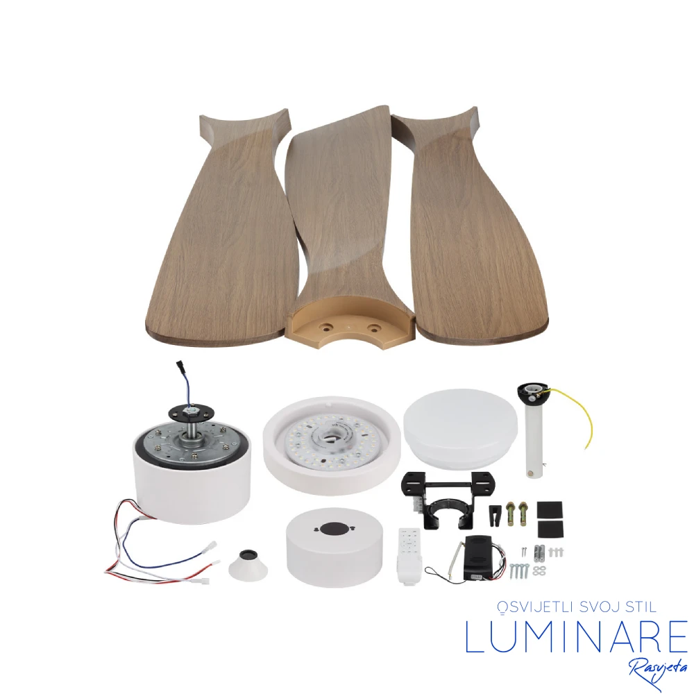 Optonica bijeli/drvo tamni hrast stropni ventilator sa LED svjetiljkom – 19108