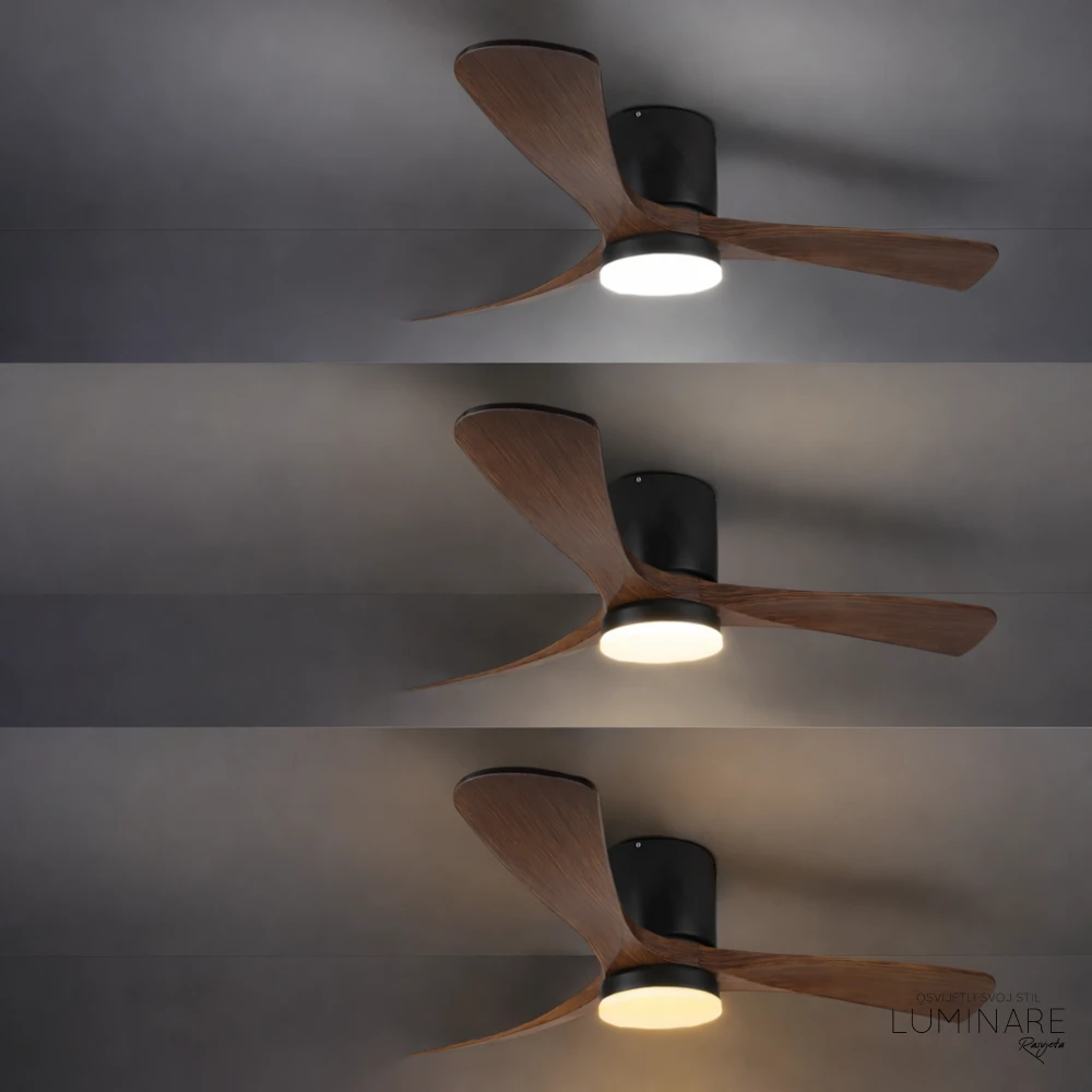 Optonica crni/drvo stropni ventilator sa LED svjetiljkom – 19112