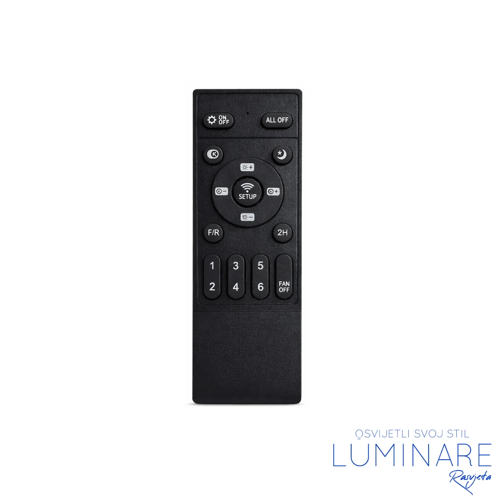 Uređaj dolazi s praktičnim daljinskim upravljačem koji omogućuje jednostavno upravljanje svim funkcijama. Putem upravljača moguće je uključiti ili isključiti ventilator, podesiti brzinu rada, upravljati LED rasvjetom ili aktivirati funkciju timera koji omogućuje automatsko isključivanje ventilatora nakon određenog vremena.