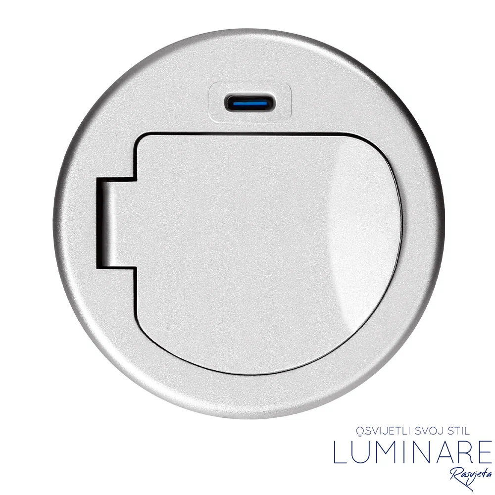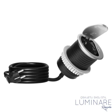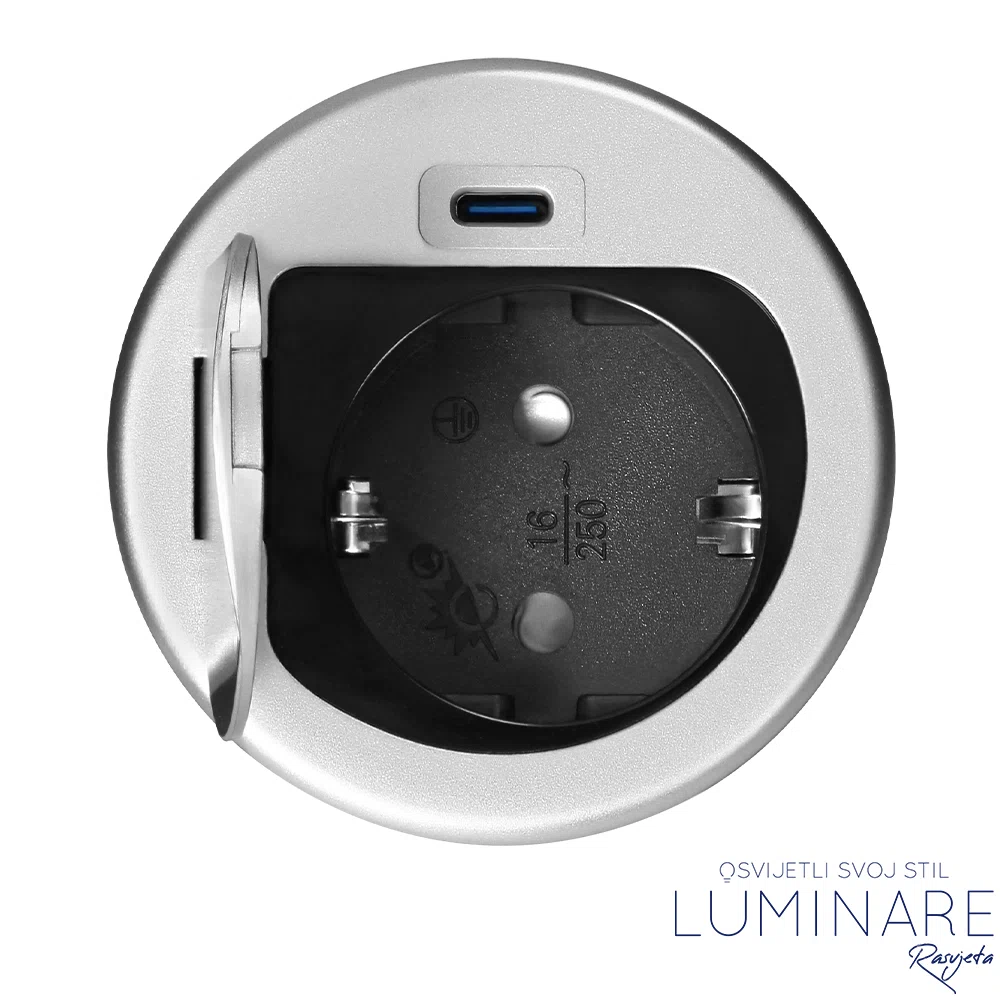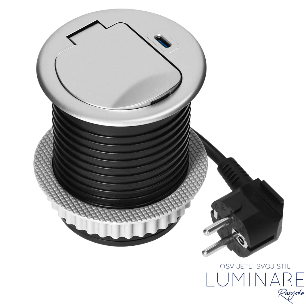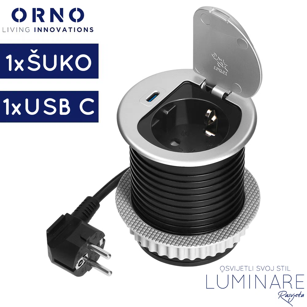 Ugradbena utičnica za namještaj 1x Schuko 1x USB C s kabelom 1,9 m – srebrna Orno OR‑GM‑9040(GS)