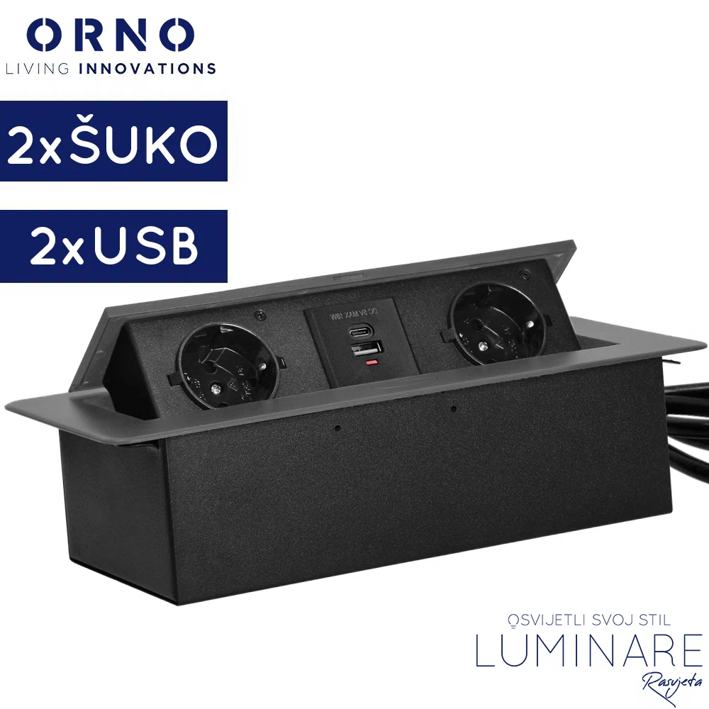 Ugradbena utičnica za namještaj 2x Schuko 2x USB s kabelom 1,5 m – grafit Orno OR‑GM‑9035(GS)/GR
