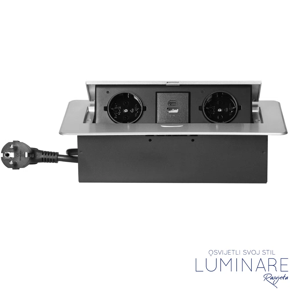 Ova ugradbena utičnica za namještaj idealno je rješenje za sve koji žele funkcionalnost, eleganciju i uredan izgled radne površine. Dizajnirana s ravnim rubom, savršeno se uklapa u ploču stola, kuhinjski pult, konferencijski stol ili bilo koju drugu površinu namještaja. Zahvaljujući diskretnoj ugradnji, utičnica ostaje gotovo neprimjetna kada nije u uporabi.