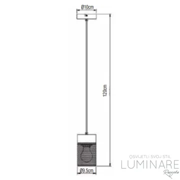 Glavna značajka ove visilice je mrežasti dizajn sjenila. Promjer sjenila je 9.5 cm, a visina visilice je 120 cm, stvarajući privlačan i suvremen izgled u prostoriji.